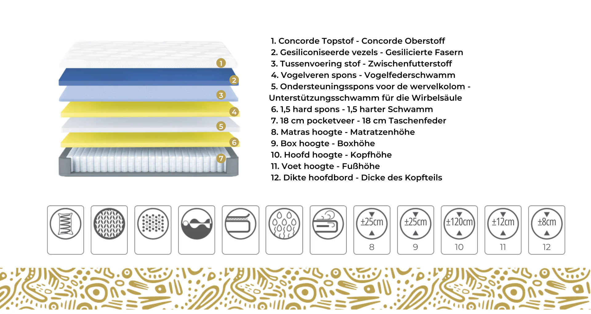 - Totale matrashoogte: ±31 cm (kan variëren afhankelijk van variant).